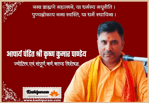 Acharya Pandit Shri Krishna Kumar Pandey Ji is an experienced Karma Kandi Brahmin and a skilled expert in the science of astrology. Pandit Shri Krishna Kumar Pandey Ji is a person of extremely simple nature and a compassionate heart, imbued with the spirit of human welfare. When the Kashi Puram team contacted him and discussed the idea of a web portal dedicated to the welfare of Hindus worldwide—where everything related to Sanatan Dharma would be offered with utmost purity, simplicity, and honesty—he agreed to provide his services.