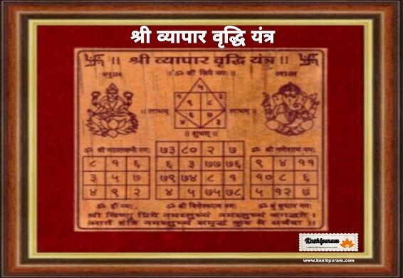 व्यापार वृद्धि यंत्र को विश्व विख्यात काशी के विद्वान् ब्राह्मणों द्वारा अभिमंत्रित किया जाता है ।
